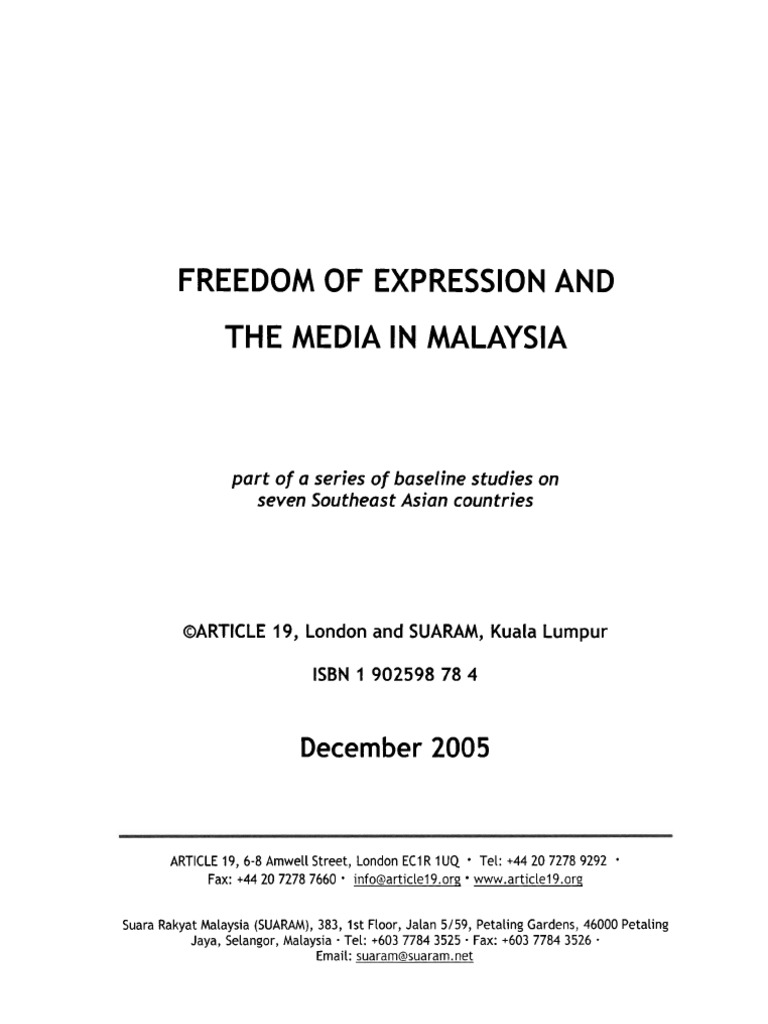 .media and freedom of expression india is one of the greatest democratic country in the world, which is based on the three pillars: June 23 — the human rights commission of malaysia (suhakam) wishes to express its concerns on the actions by the police using specific laws against activists, politicians, journalists and human rights defenders for exercising their freedom of expression. The sedition act of 1948 and the communications and multimedia act 1998 (cma) remain the authorities' most frequently evoked laws used to suppress critical discourse in malaysia; Freedom of expression and assembly in malaysia are currently under attack, aided by the existence of broad and vaguely worded laws that the government can wield to arrest, investigate, and imprison its critics. The sedition act remains the single most dangerous legislation that threatens freedom of expression in malaysia.